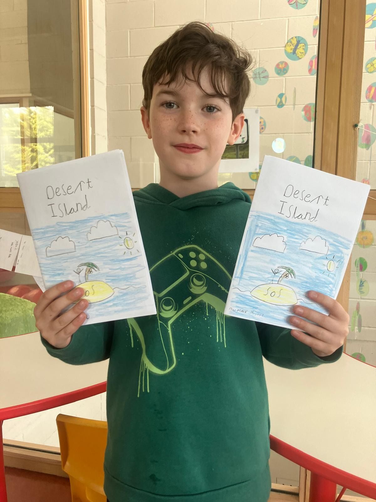 Max in second class published his first book in the library this week. He is both author and illustrator. It’s an exciting story, and available in the library to read now!