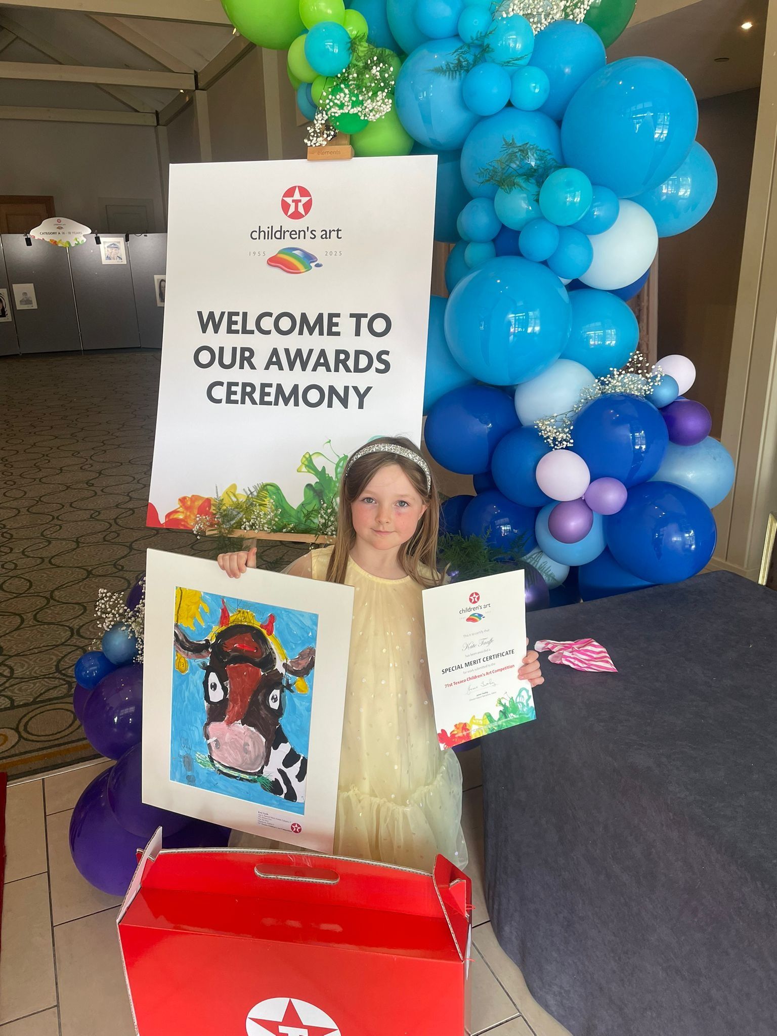 Kate from Senior Infants received the Special Merit award in the 6 years and Under Category for the Texaco Art Competition. There were 126 award winners out of 20,000 entries! Congratulations Kate!