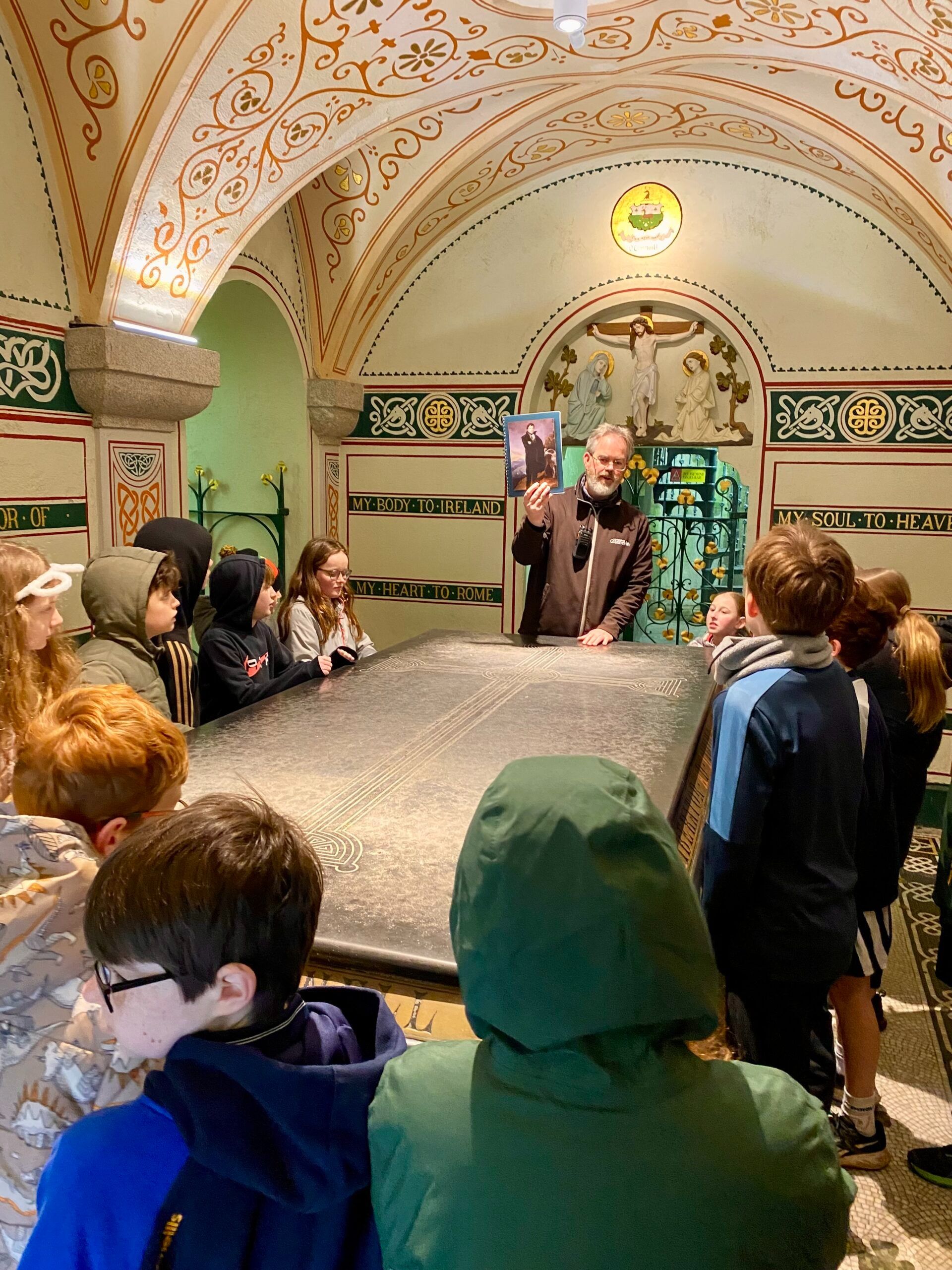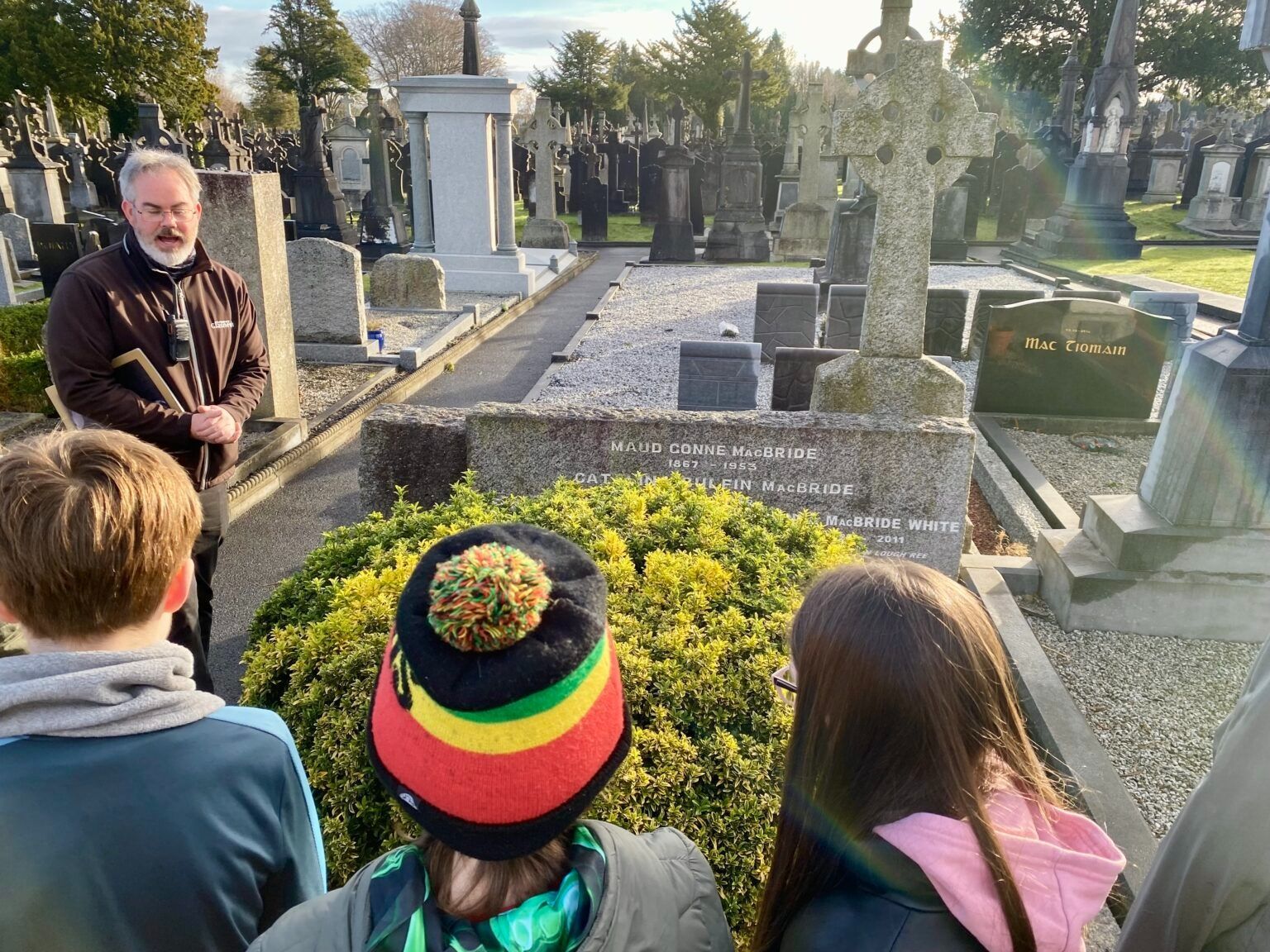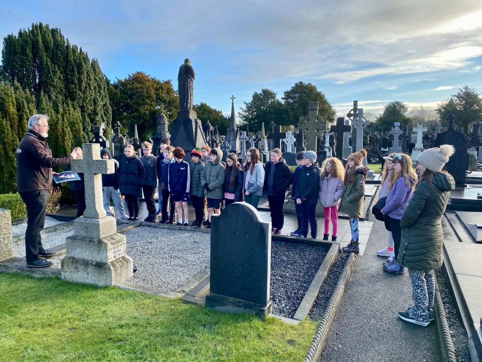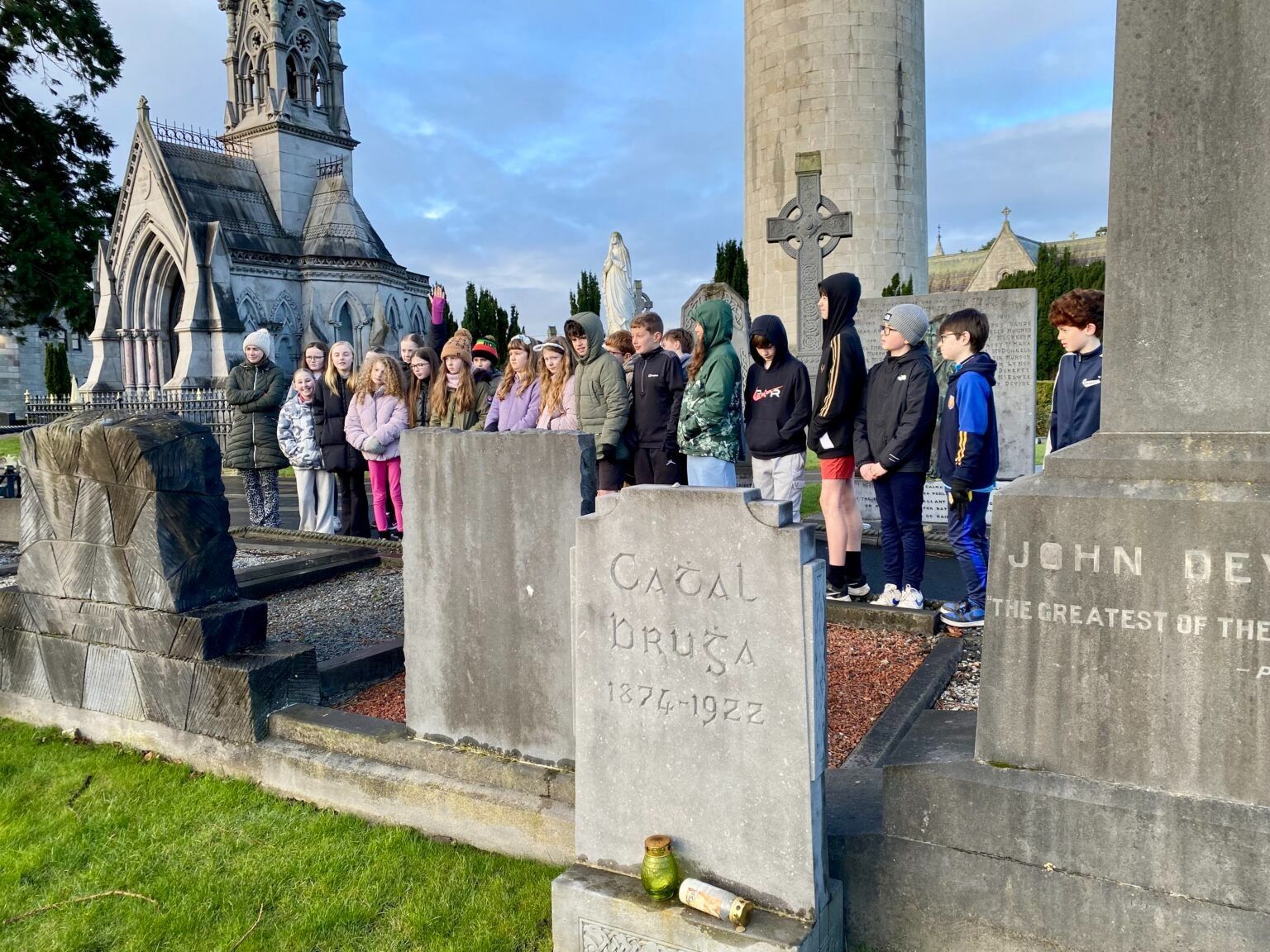 On Wednesday morning, both 5th classes made the short trip to Glasnevin Cemetery. We have been studying the Easter Rising in class this month so our tour had a special focus on some of the heroes from that period of Irish history. We found it very interesting and we learned a lot!