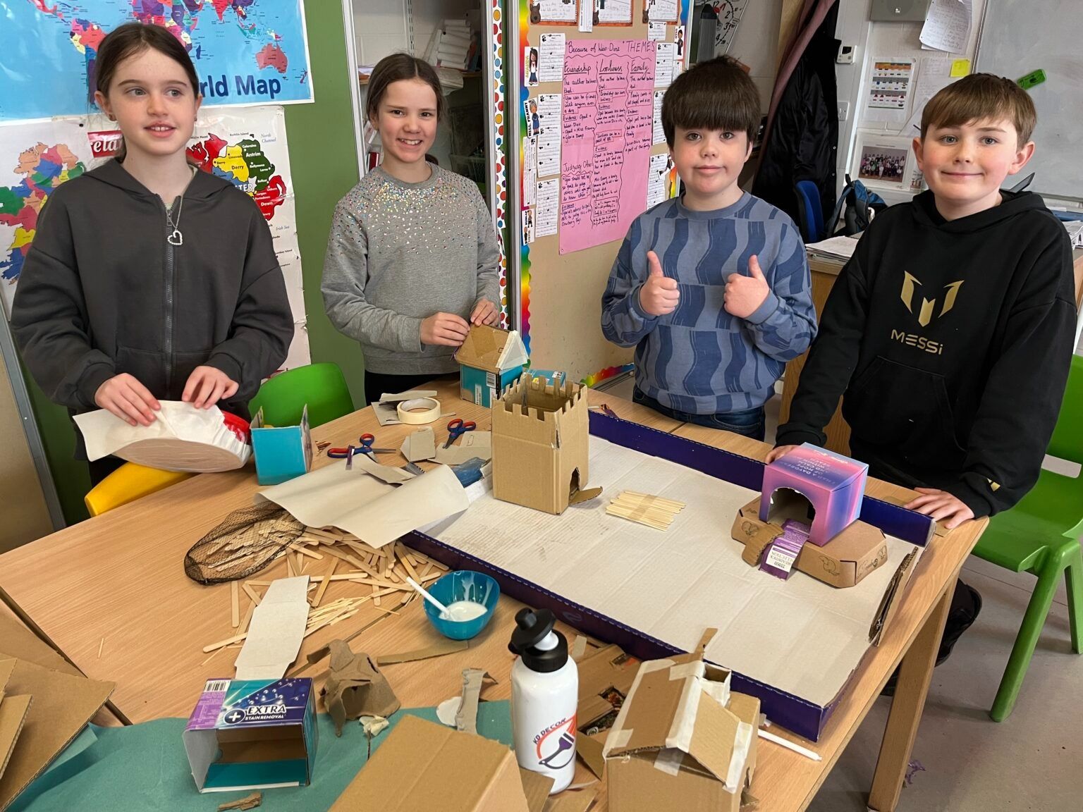 Naomi’s 4th class were hard at work this week to create ‘Motte and Bailey’ castles following their learning in history about the Normans. They showed great teamwork skills and historical knowledge in their creative pieces!